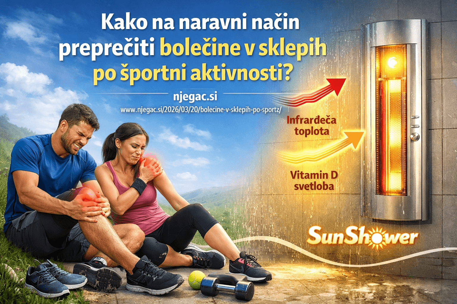 • Inovativna naprava Sunshower z izkoriščanjem IR in UV svetlobe prispeva k zmanjšanju bolečine v sklepih.