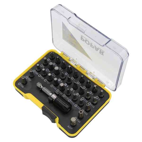 Set vijačnih nastavkov sestavljajo bits nastavki ploščati. Priloženo držalo nastavkov in adapter za nastavke.