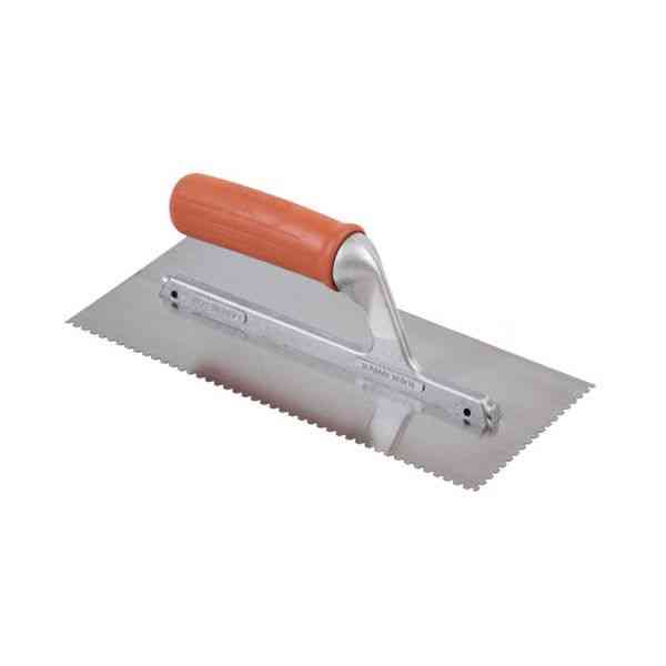 Zobčasta gladilka z majhnimi vrezanimi zobci v obliki “V”, idealna za tanko nanašanje lepila pri polaganju vinilnih talnih oblog, kot tudi pri polaganju mozaikov. Z listom izdelanim iz kaljenega jekla s protikorozijsko obdelavo ter ročajem iz poliranega aluminija, elektro privarjenim na list, z gumijasto prevleko.